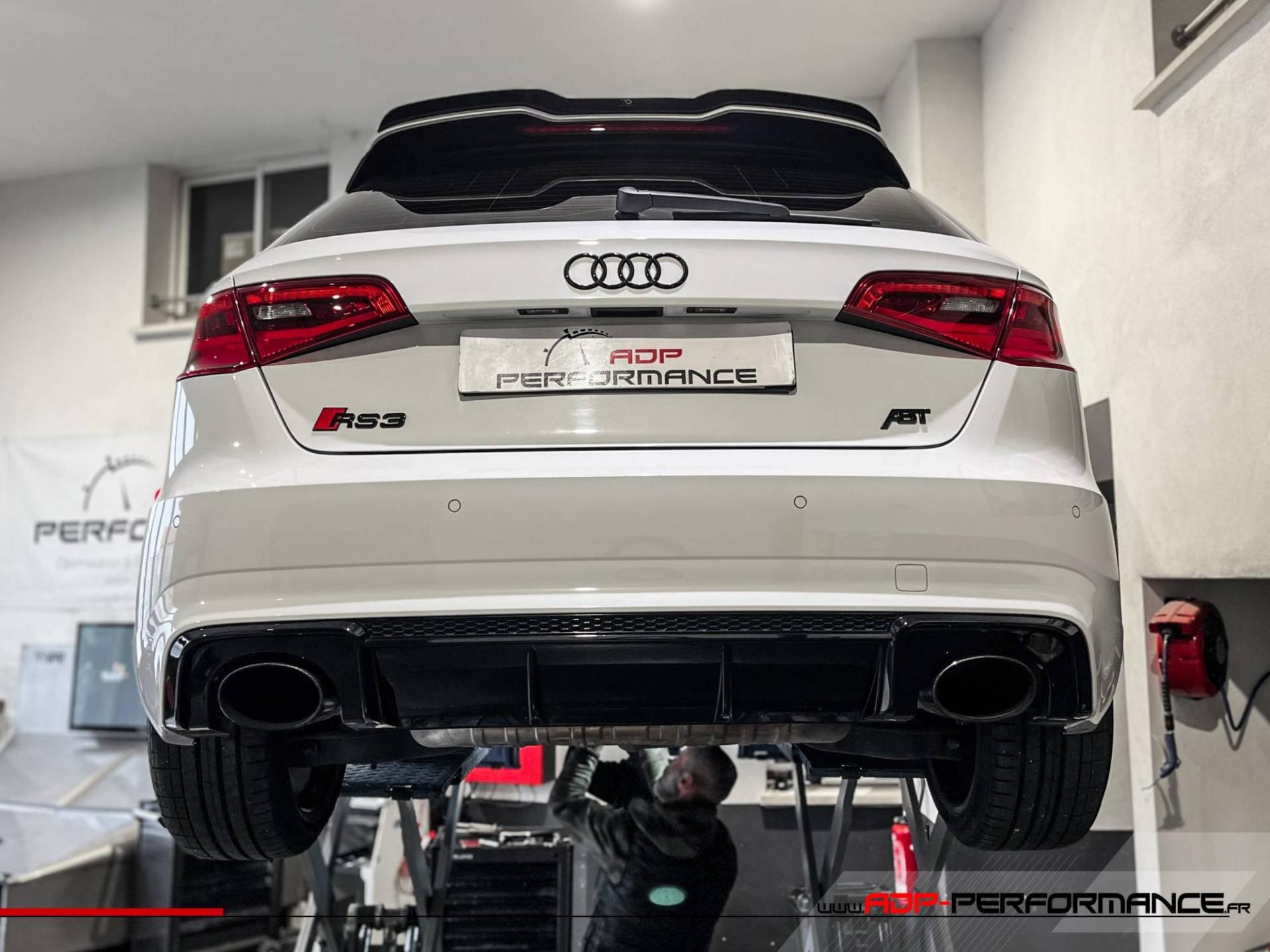 Retour en image sur l'installation des tubes de suppression de la marque Milltek pour les seconds catalyseurs sur une Audi RS3 8v équipée d'un moteur 2.5 TFSi de 367cv.
